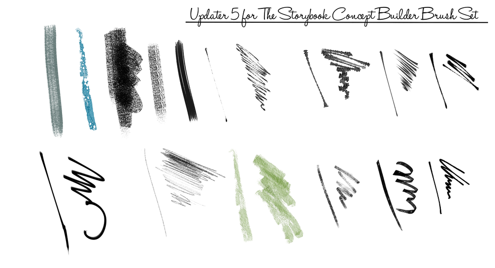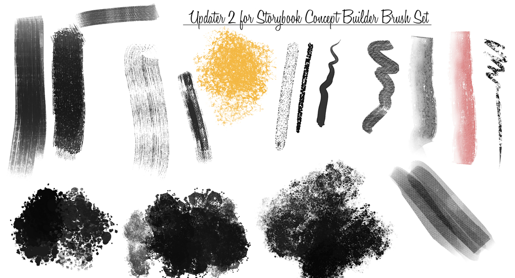 Updater 4: This update has 16 more unique digital tools for you to add to your digital catalog of Storybook Concept Builder Brushes, adding salting tools and more to give you plenty of options. Part 1 of a two part updater.