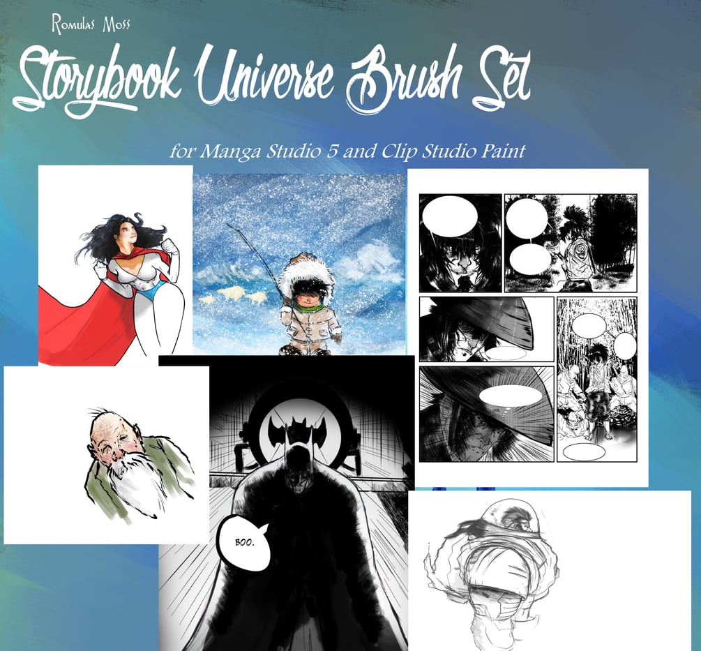 The Storybook Universe Brush Set: (for Manga Studio 5/ Clip Studio Paint) Gives you an amazing amount of versatility over 390 quality digital tool to assist you in creating you digital illustrations, paintings, concepts, sketches, and self -made web comics. Included in the Storybook Brush Set are: